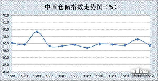 中国物流与采购联合会与中储发展股份有限公司联合调查的2015年12月中国仓储指数为48.7%,较上月大幅回落4.4个百分点。各分项指数中,除期末库存指数出现回升外,其余指数均有不同程度回落。