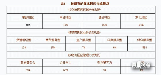 物流园区工作。为使业界了解我国物流园区运行的基本情况,为政府制定园区发展政策提供决策参考,为园区运营单位与入驻企业提供行业坐标,为示范物流园区评选工作提供技术数据参照,中物联物流园区专委会专家委员会在连续两年按照优秀物流园区评价的基础上,结合第四次全国物流园区调查,先期从参评上千家报送的基础资料园区中甄选出100家园区问卷进行统计分析,形成本报告。被调查的样本园区构成情况如表1所示。
